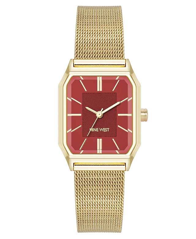Nine West Women's Quartz Faceted Gold-Tone Stainless Steel Mesh Watch