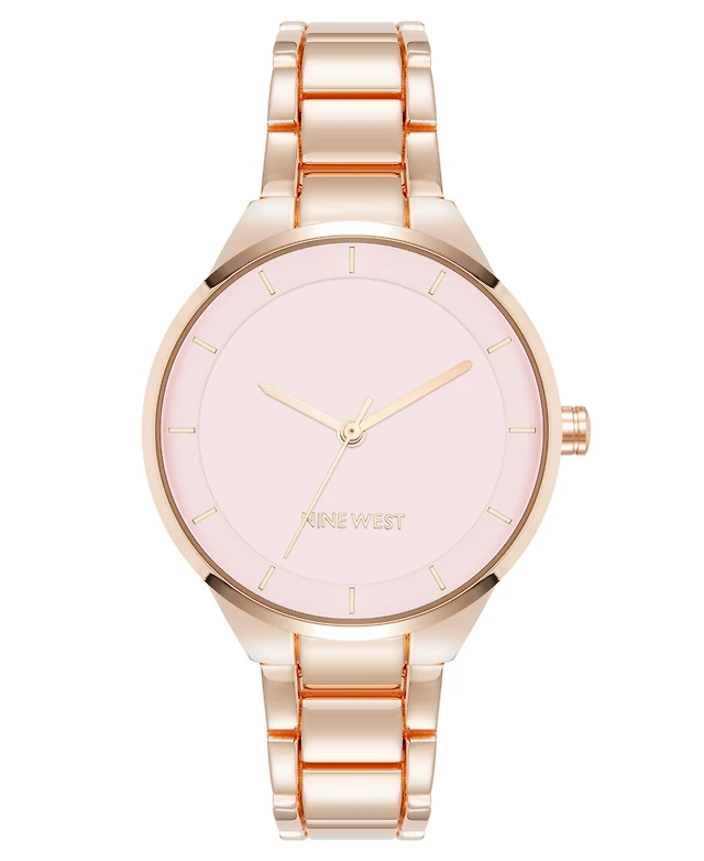 Nine West Women's Quartz Pink and Rose Gold-Tone Metal Alloy Watch, 34mm