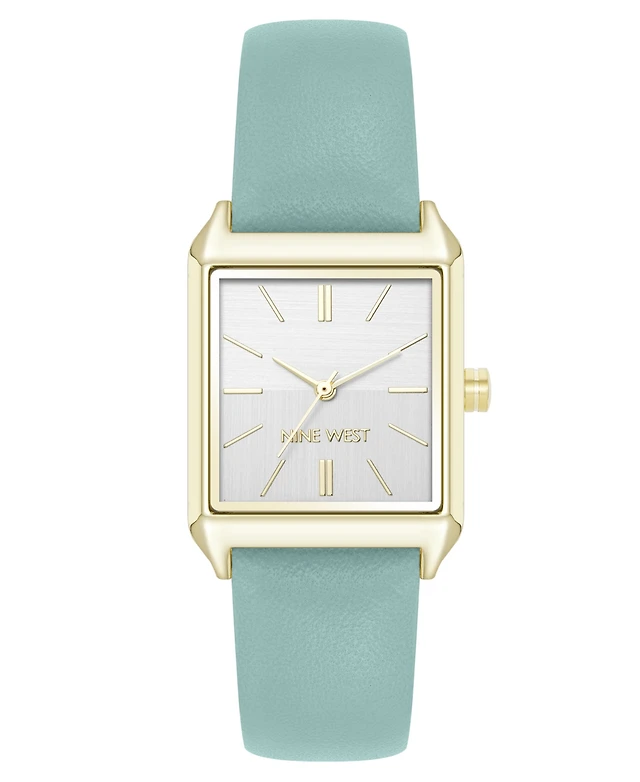 Nine West Women's Quartz Rectangular Gold-Tone and Mint Polyurethane Leather Band Watch, 29mm