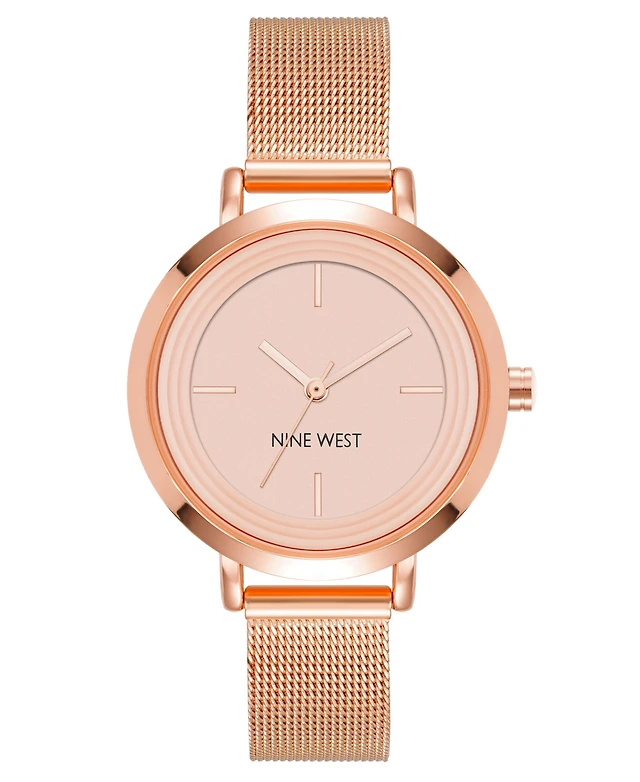 Nine West Women's Quartz Rose Gold-Tone Stainless Steel Mesh Band Watch