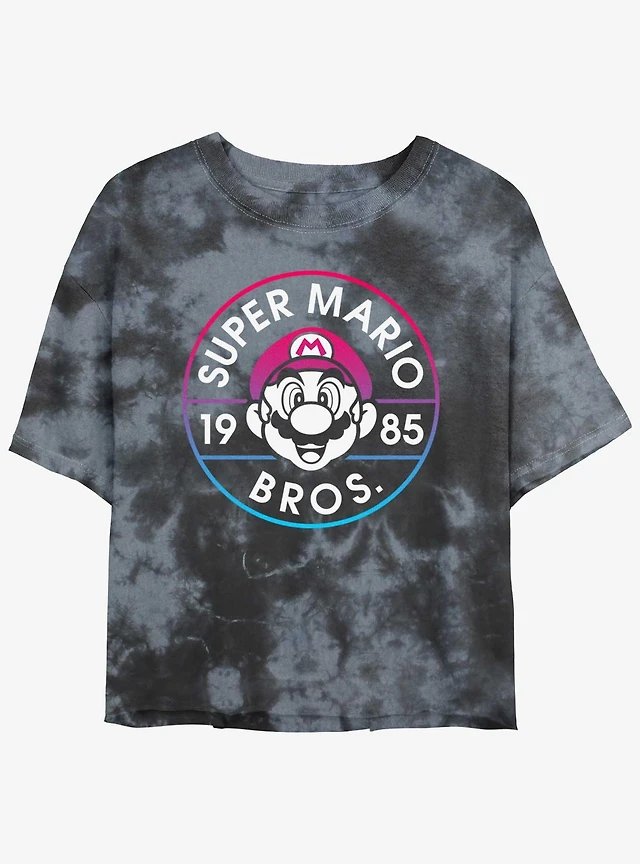 Nintendo Mario 1985 Classic Badge Tie-Dye Womens Crop T-Shirt