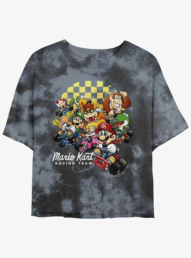 Nintendo Mario Kart Checkered Kartin' Tie-Dye Girls Crop T-Shirt