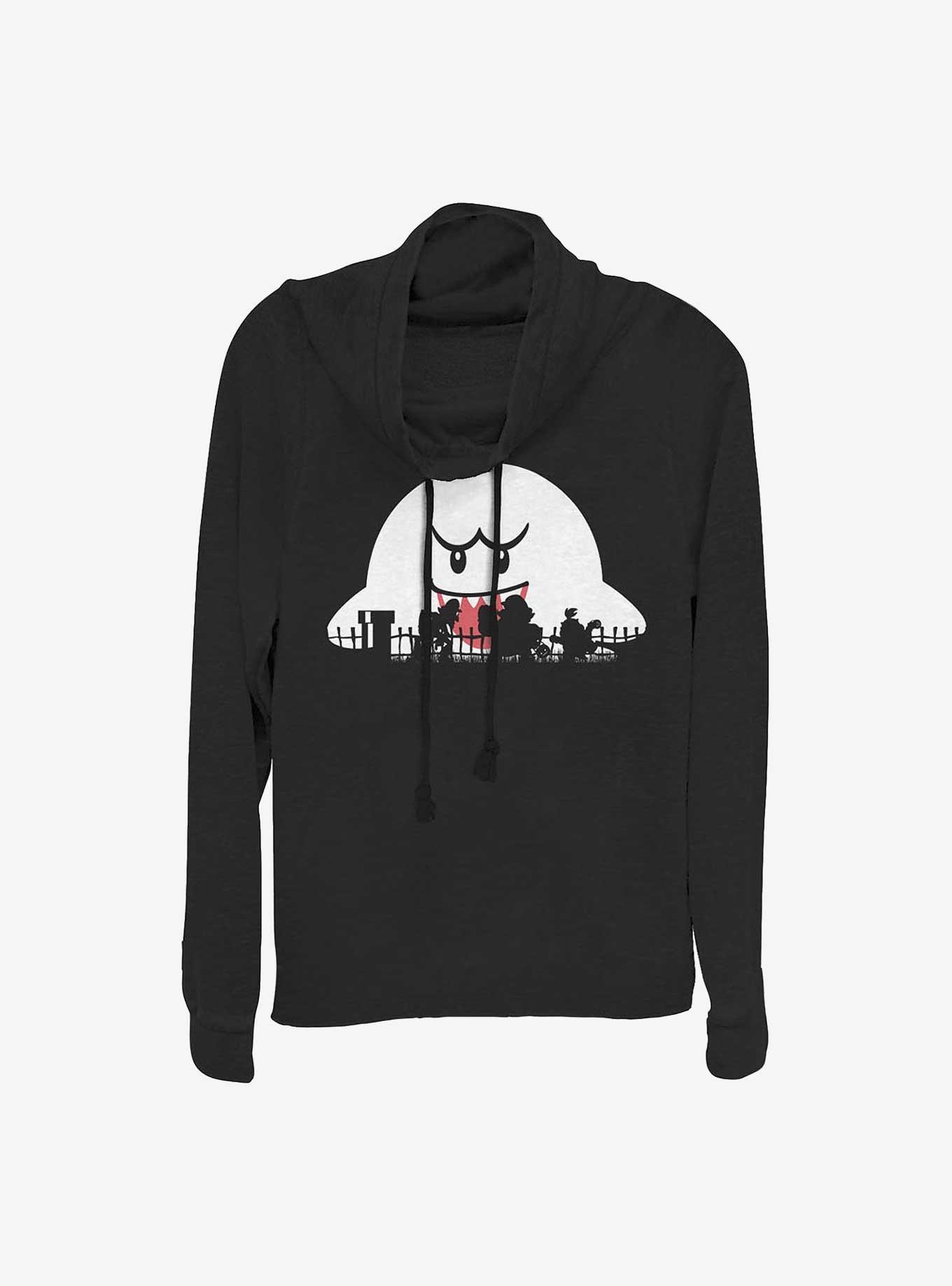 Nintendo Mario Halloween Silhouettes Girls Cowlneck Long-Sleeve Top