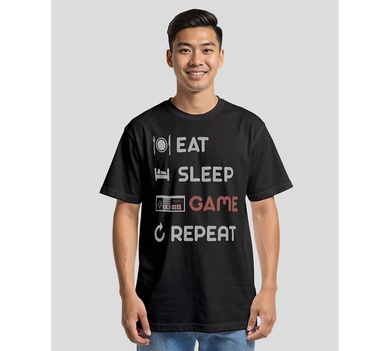 Nintendo Men's Nes Eat Sleep Game Repeat Short Sleeve T-Shirt