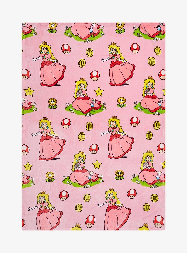 Nintendo Super Mario Bros. Princess Peach Allover Print Fleece Throw