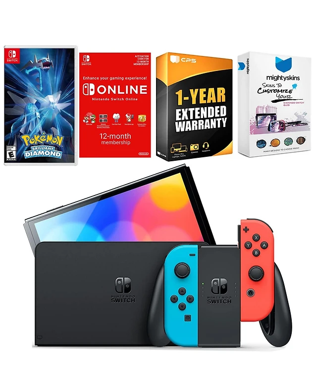 Nintendo Switch Neon Red & Blue Oled Console with Pokemon Brilliant Diamond, Nso 12 Month Family Membership