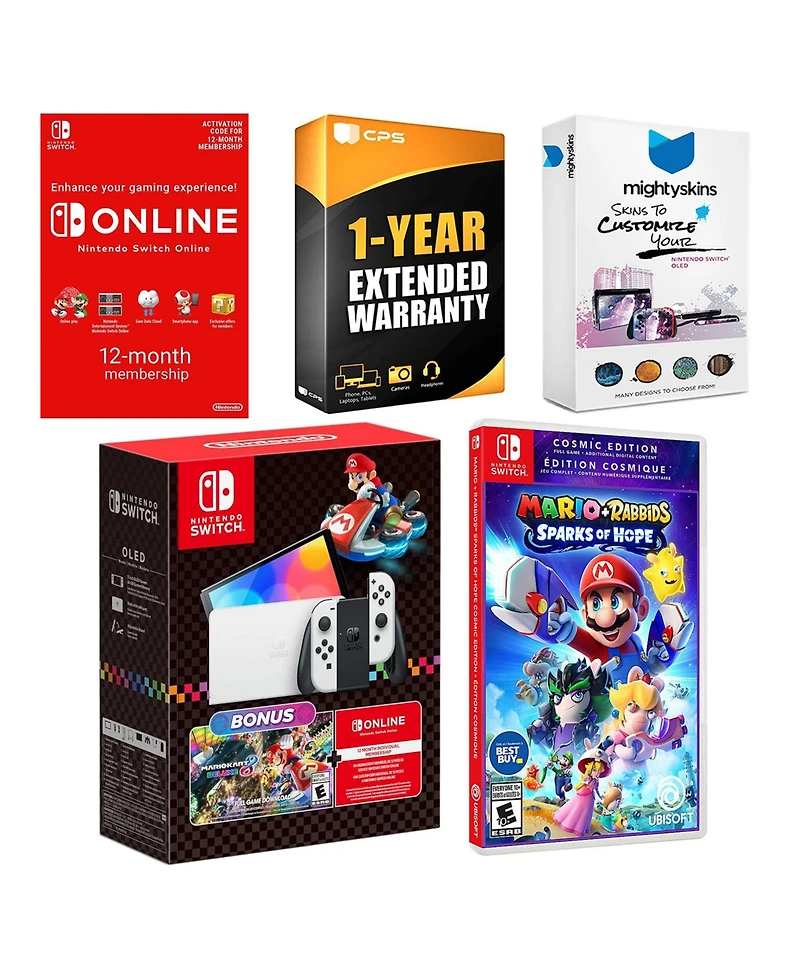 Nintendo Switch Oled Console Mario Kart 8 Bundle with Mario + Rabbids Sparks of Hope Cosmic Edition, Nso 12 Month Family Membership