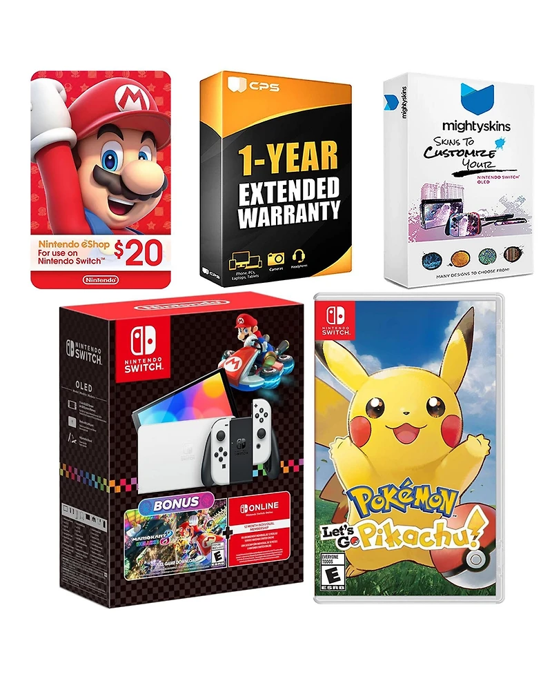 Nintendo Switch Oled Console Mario Kart 8 Bundle with Pokemon Let's Go, Pikachu!, Nintendo $20 eShop Gift Card