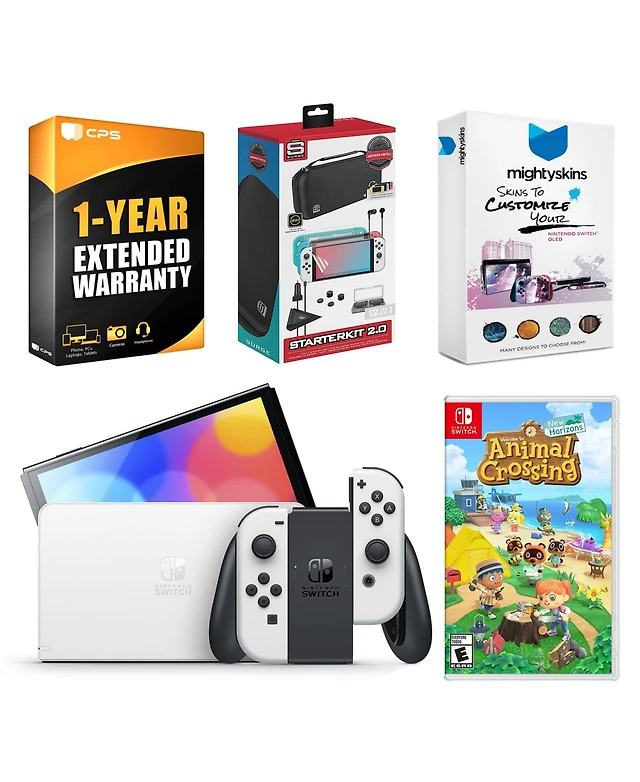 Nintendo Switch White Oled Console with Animal Crossing: New Horizons, Surge 12 in 1 Accessory Starter Kit 2.0
