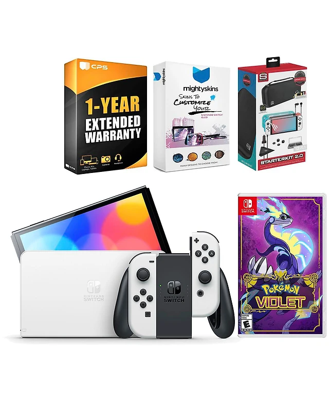 Nintendo Switch White Oled Console with Pokemon Violet, Surge Accessory Gaming Kit