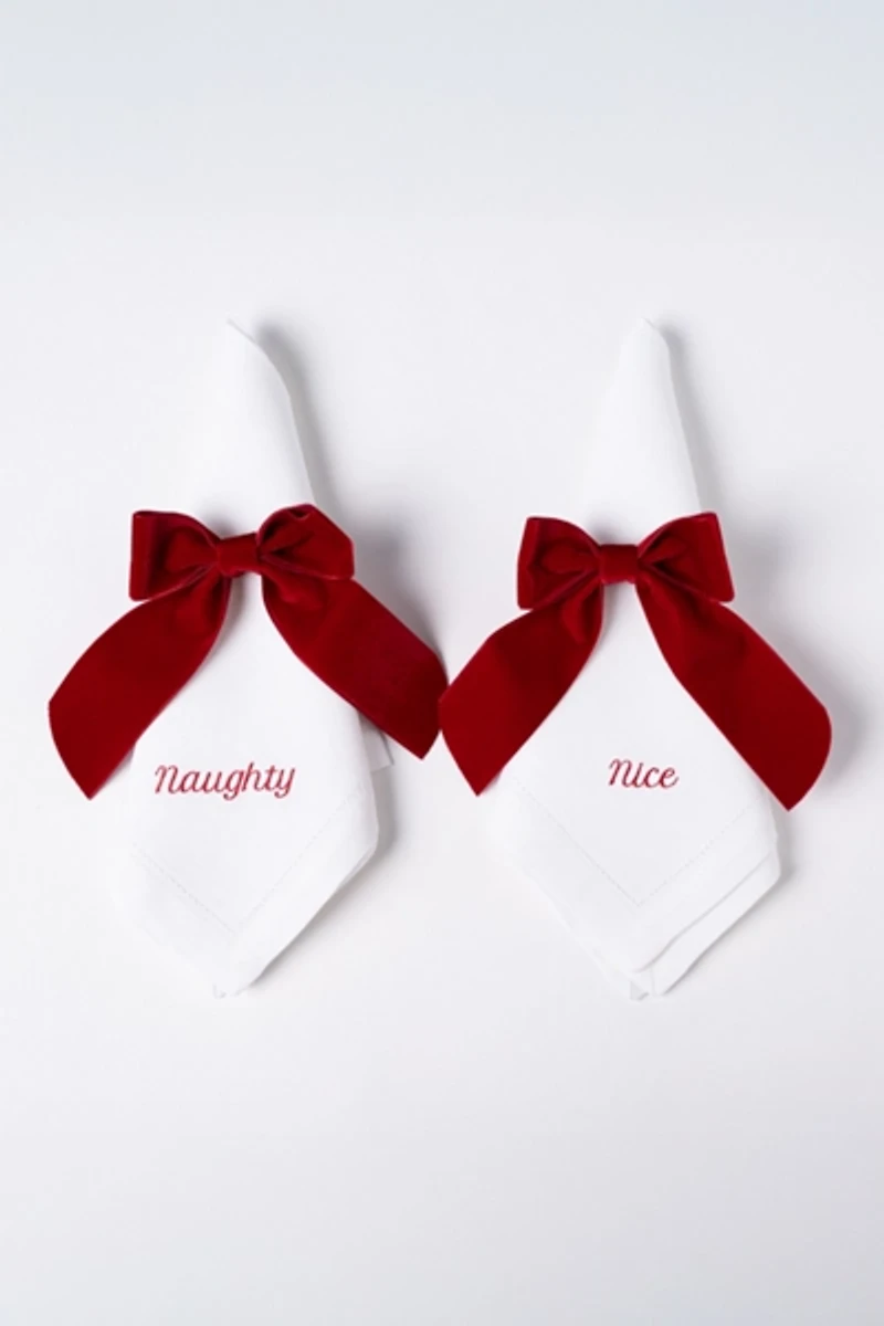 Add a wink of holiday humor to your table with our "Naughty or Nice" Dinner Napkins. Crafted from 100% premium linen, these napkins blend timeless elegance with a cheeky festive twist. Each set features two designs "Naughty" and "Nice" bringing laughter and charm to every holiday gathering. Perfect for Christmas parties or family dinners, whether you seat your guests by personality or mix things up, the "Naughty & Nice" collection sets the perfect playful tone for the season.