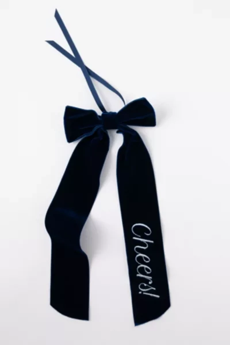 Skip with silver bag and wrap your bottle with a velvet bow for a reusable, charming touch! Each wine bow is embroidered with a fun celebratory saying.