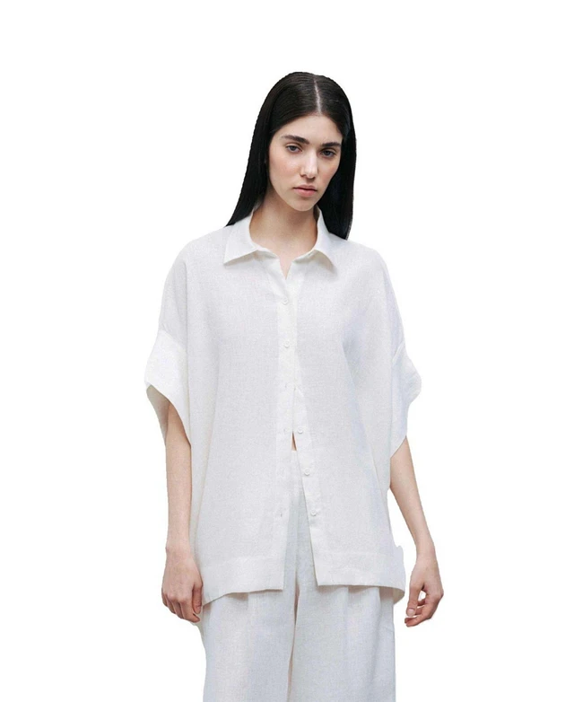 Nocturne Women's Ecru Linen Flowy Linen Shirt