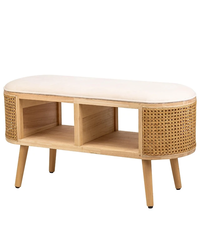 Nordlys - Beige Velvet and Rattan Storage Bench Exotic Boho Upholstery Entry
