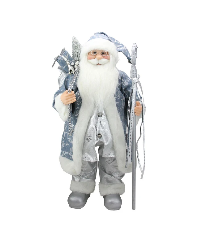 Northlight 25" Ice Palace Standing Santa Claus in Blue and Silver Holding A Staff Christmas Figure