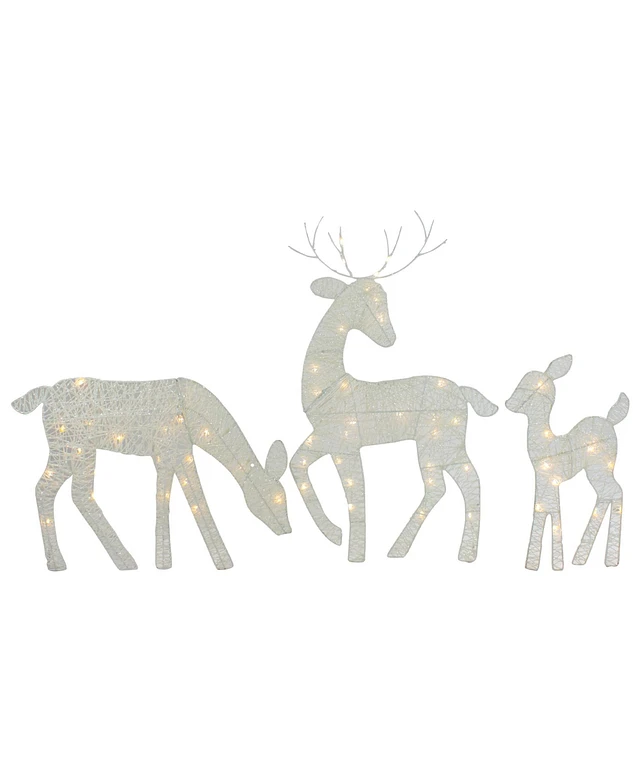 Northlight Set of 3 White Glittered Doe Fawn and Reindeer Lighted Christmas Outdoor Decoration
