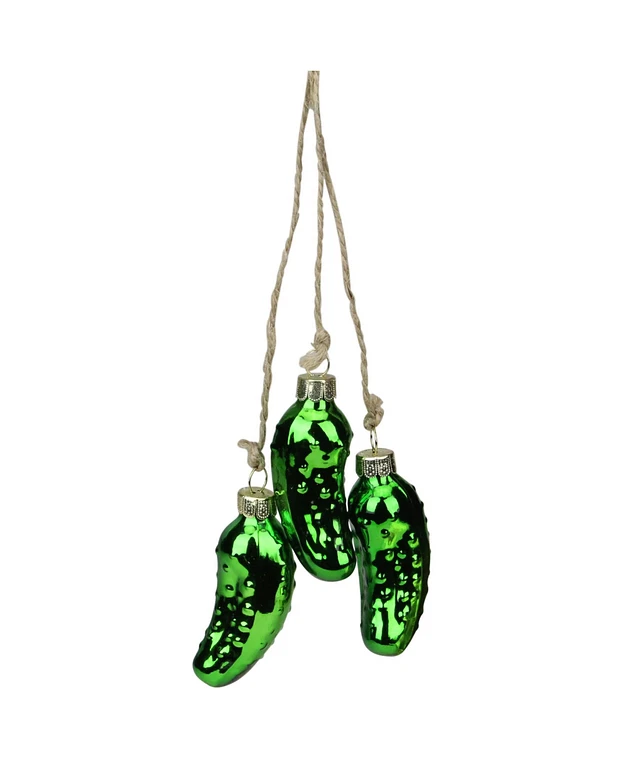 Northlight 8.5" Shiny Green Pickle Cluster Trio Glass Christmas Ornament