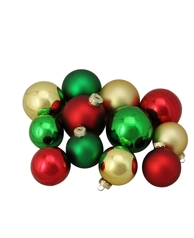 Northlight 96ct Red Green and Gold Shiny and Matte Glass Ball Christmas Ornaments 2.5-3.25"