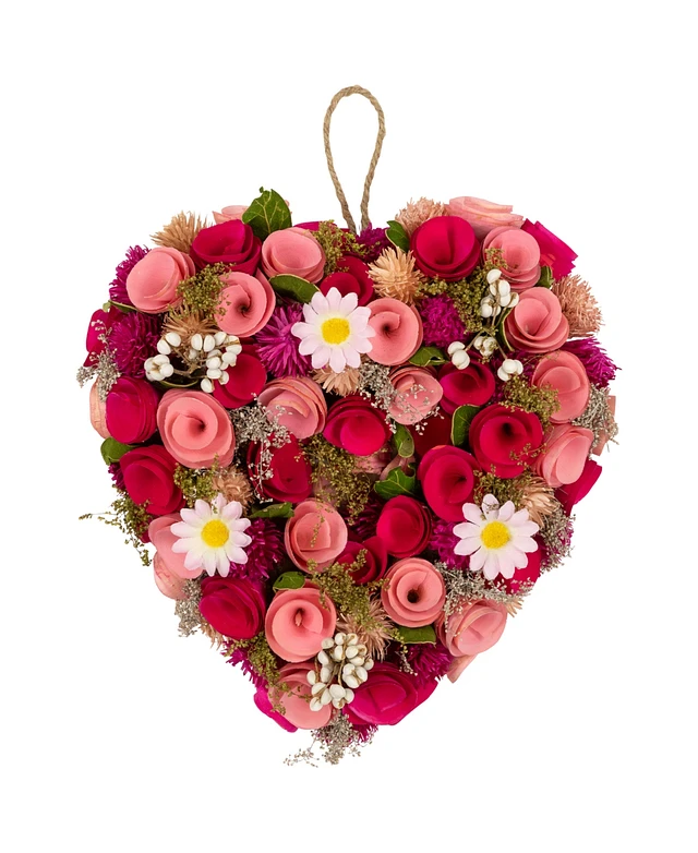 Northlight Mixed Floral with Daisies and Berries Artificial Valentine's Day Heart Wreath, 10.25"