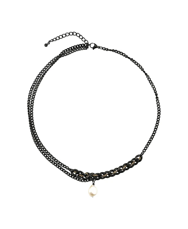 2028 Silver-Tone Gray Imitation Pearl Chain Necklace