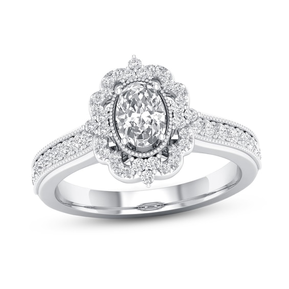 Now + Forever Diamond Engagement Ring 7/8 ct tw Oval & Round-cut 14K White Gold