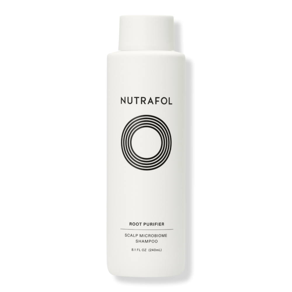 ROOT PURIFIER SHAMPOO 8.1FLOZ. Benefits: Balances oil production without stripping the scalp (1). Dissolves build-up and unclogs pores to promote a healthy scalp (1). Hydrates to reduce dryness and itchiness of the scalp (1). Supports and maintains the scalp microbiome to create a foundation for hair to grow and thrive. Visibly improves volume and texture for stronger-feeling hair (1). Clinically tested. Safe for sensitive skin. Certified microbiome-friendly. Color and extension safe. 100% natural fragrance. Formulated without parabens, phthalates, silicones, sulfates. Research Results: In a clinical study (1):. 100% of women had an immediate reduction in sebum. 100% of women had an improvement in dry, flaky scalps immediately. On average, women had a 22% increase in scalp hydration after 2 weeks. 1. Nutrafol. Data on file. 2022.. Key Ingredients: Australian Wild Berry Extracts: Antioxidant-rich berry extracts for healthier-looking hair and a hydrated scalp during exfoliation. Biosurfactant: A bio-based cleanser that provides a deep cleanse without stripping the scalp. Prebiotic: Known to help strengthen the scalp barrier by feeding the microbiome.