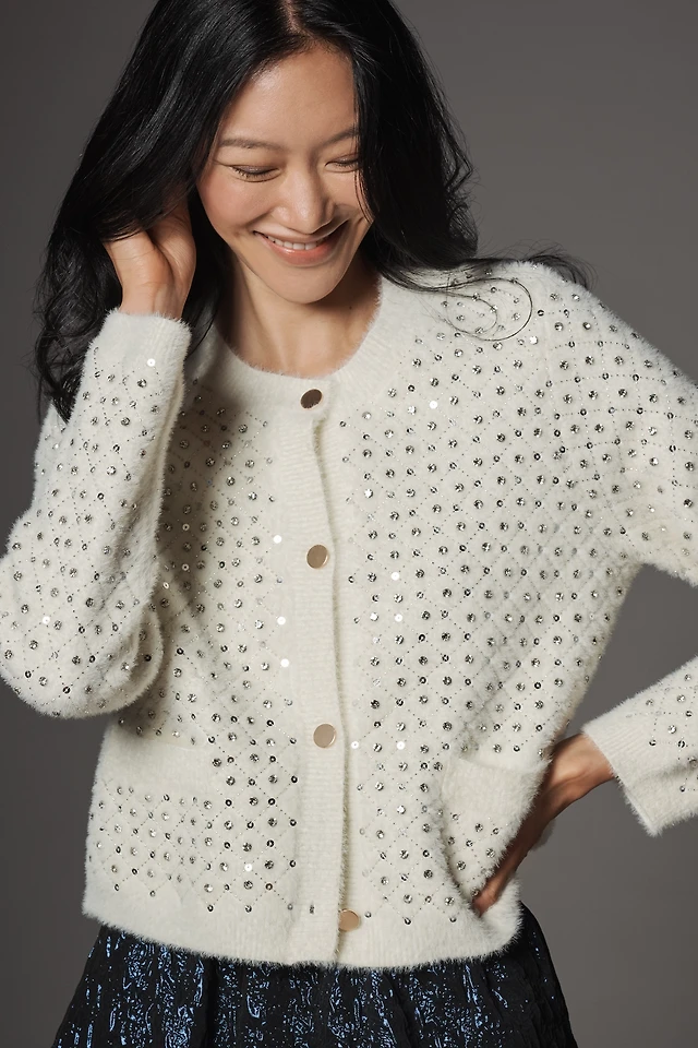 NVLT Sequin-Embellished Trim Knit Lady Jacket