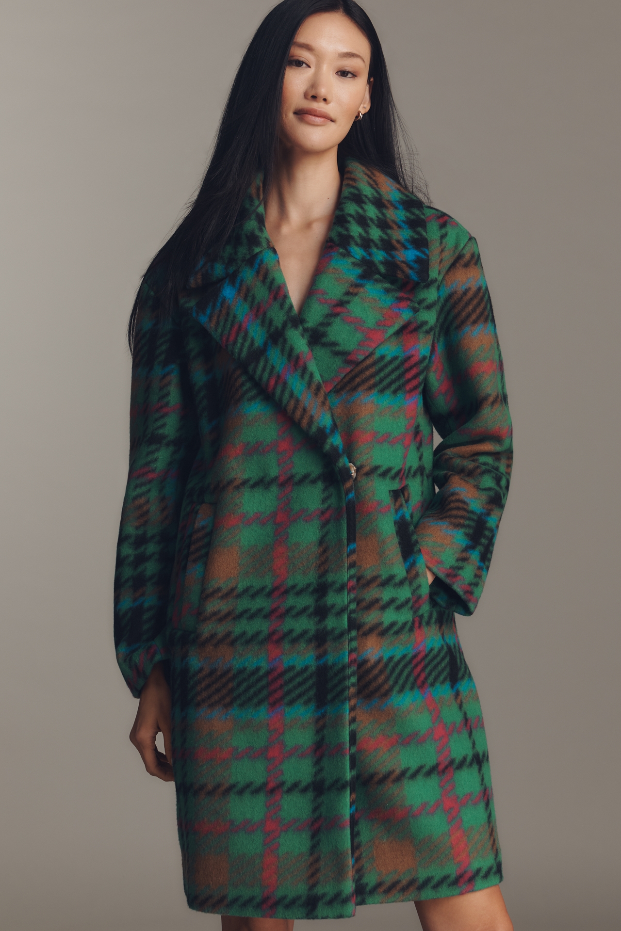 NVLT Plaid Wool Blend Mid-Length Coat