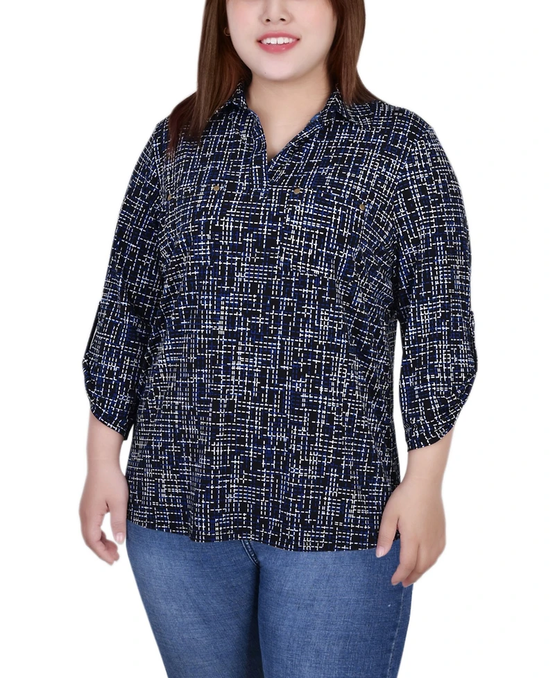 Ny Collection Plus Size 3/4 Ruched Sleeve Studded Top