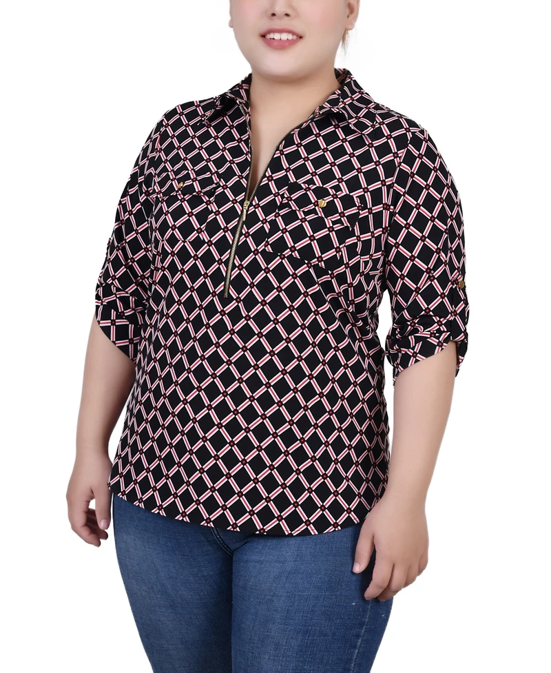 Ny Collection Plus Size Roll Tab Sleeve Zip Front TopNy Collection Plus Size Roll Tab Sleeve Zip Front TopNy Collection Plus Size Roll Tab Sleeve Zip Front Top