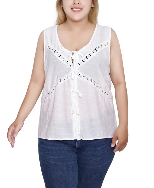 Ny Collection Plus Sleeveless Pintucked Blouse