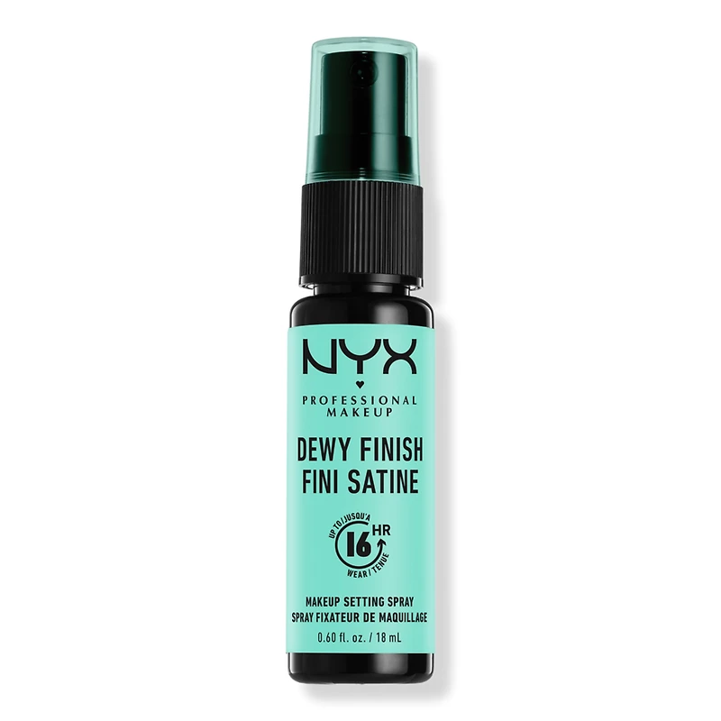MAKEUP SETTING SPRAY MINI DEWY. Benefits: Mini makeup setting spray with a dewy fresh glow finish to lock in your makeup look on the go. Features a lightweight, no transfer, long-lasting formula that keeps makeup looking flawless with that "just-applied" look from day to night. Say hello to a truly luminous complexion with this long lasting setting spray, that works to keep your skin looking lustrous, while leaving a poreless smooth face behind. This dewy finish is ideal for those looking to nourish dry skin & keep skin radiant and moisturized. This sheer & smooth dewy setting spray mini is the finishing touch to your beauty routine that you need to add to your makeup bag ASAP. Looking for a shine-free finish? Check out NYX Professional Makeup Matte Setting Spray or for an illuminating finish try NYX Professional Makeup Radiant Setting Spray & for a hydrated, dewy finish try NYX Professional Makeup Dewy Setting Spray.. : :