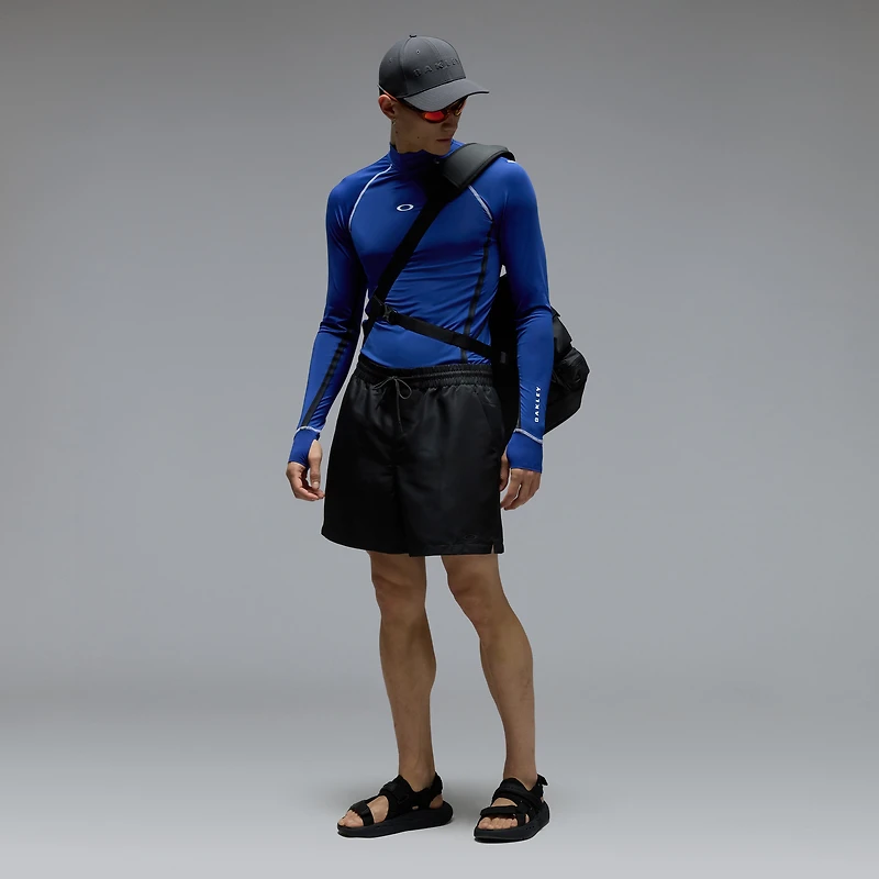 Hit the waves with even more confidence in this rash guard constructed from a flexible and moisture-wicking recycled nylon and spandex blend designed not only to protect your skin from the sun and other irritants but also to keep you warm and dry in and out of the water. From the laser-cut ventilation holes to the double layer cuffs with thumbholes and the bottom hem with elastic loop to connect to your board shorts, every detail is engineered to maximize comfort and keep you at the top of your game. Turtleneck collar with 3d logo on chest and left sleeve.