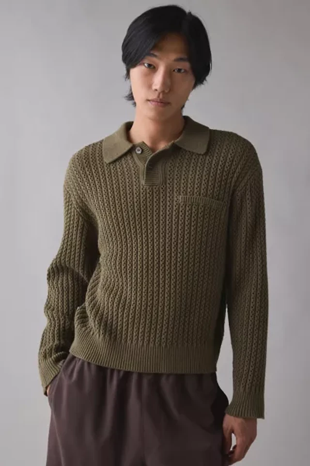 Open knit sweater with polo collar