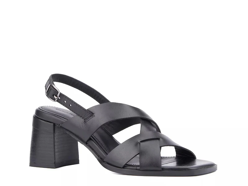 Stay elegant this summer in the Vintage Foundry Odelle sandal. The strappy profile gives a stylish appeal to the leather sandal, finished with a modern square toe, while the stacked block heel offers some lift.