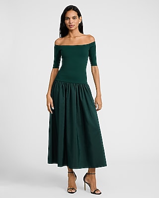 Off The Shoulder Mixed Media Drop Waist Maxi Dress with Pockets in Bloomington, MN