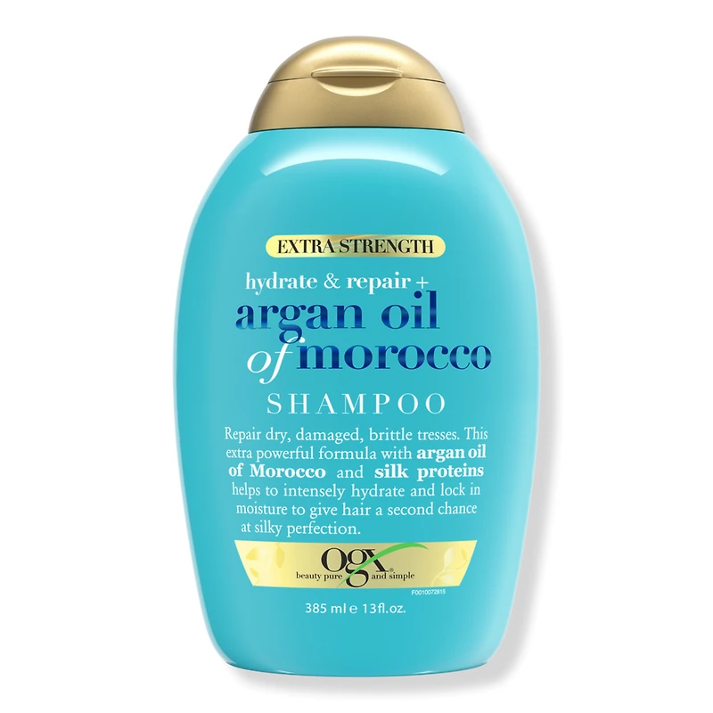 HYD + REPR ARGAN OIL OF MOROCO SHAM 13OZ. Benefits: Extra-hydrating shampoo also helps improve hair strength and elasticity for medium to coarse hair. Gives hair a look & feel of silky perfection & a radiant shine, leaving soft & touchable tresses. The pleasant coconut milk, tangerine & warm vanilla scent leaves locks smelling irresistibly good. Ideal for dry, damaged and brittle hair, daily moisture shampoo quenches your strands as it cleans. For a full hair care routine, pair shampoo with OGX Extra Strength Argan Oil of Morocco Conditioner. Key Ingredients: Formulated with a blend of silk proteins & cold-pressed Moroccan argan oil to help revive hair. :