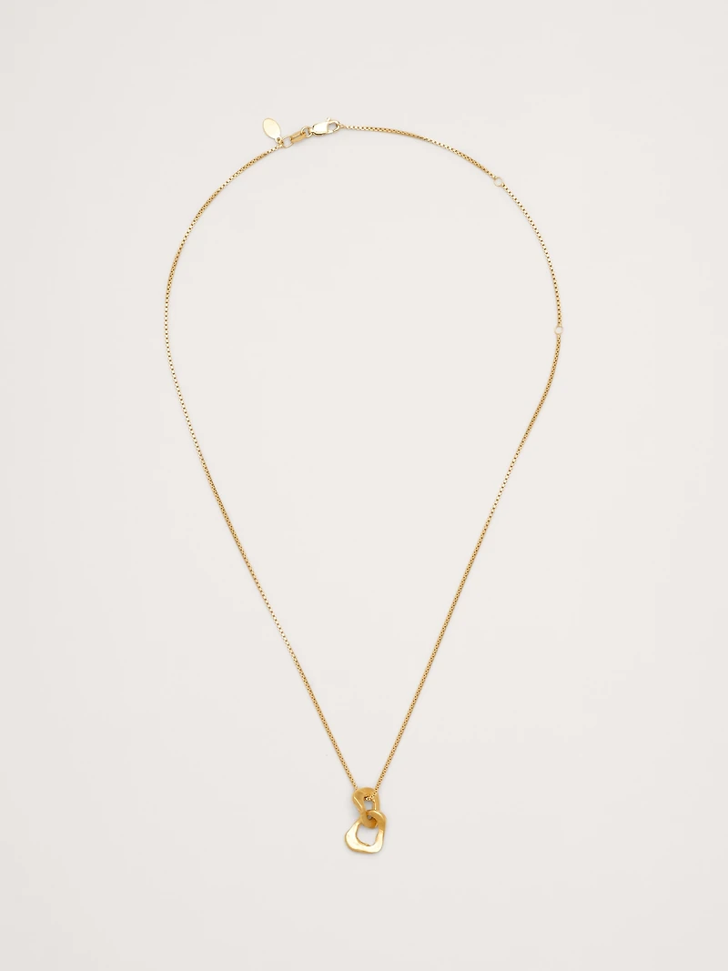 A playful mix-matched pair of wavy forms forever linked together—in your choice of recycled sterling silver or 14K gold vermeil. Part of Salt Grass' Rising Collection, which embraces the beauty found in the wobbliness of our world. Salt Grass Jewelry: Salt Grass Jewelry creates slow-made, sculptural pieces inspired by the high desert—modern heirlooms rooted in nature, symbolism, and thoughtful craftsmanship. Clasp closure. Pendant length: 1. 25" Chain adjusts from 16" to 18" and 20" long.