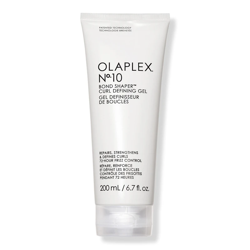 NO.10 BOND SHAPER CURL DFNG GEL 6.8OZ. Benefits: Defines curls with flexible, all-day holdno residue. Strengthens hair and gives 450F/232C heat protection. 2025 Allure Best of Beauty Award Winner for Best Hair Gel. Key Ingredients: Patented OLAPLEX Bond Technology Strengthens hair and repairs damage on a molecular level by rebuilding the disulfide bonds that give hair its strength.. Curl Retention Compound A blend of highly humidity-resistant, flexible polymers, plant collagen, sugars that form a curl-locking barrier to enhance definition, smoothness, and healthy shine.. Coconut-Avocado Hair Milk High in Lauric Acid, fatty acids, and essential vitamins to help fortify curls, reduce breakage, nourish, and condition for soft, shiny curls.. Research Results: 3X greater curl retention* & 96% agree natural curl pattern is enhanced. 90% agree curls maintained hydration after 7 days**. *Clinically proven.. **Based on a consumer perception study of 130 participants after 1 use; 7 days of use..