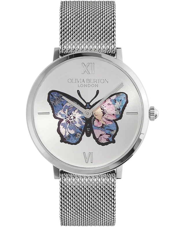 Olivia Burton Women's Signature Butterfly Silver-Tone Stainless Steel Mesh Watch 35mm