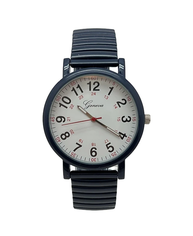 Olivia Pratt Navy Stretch Band Easy Read Nurse Watch with Second Hand Women Watch