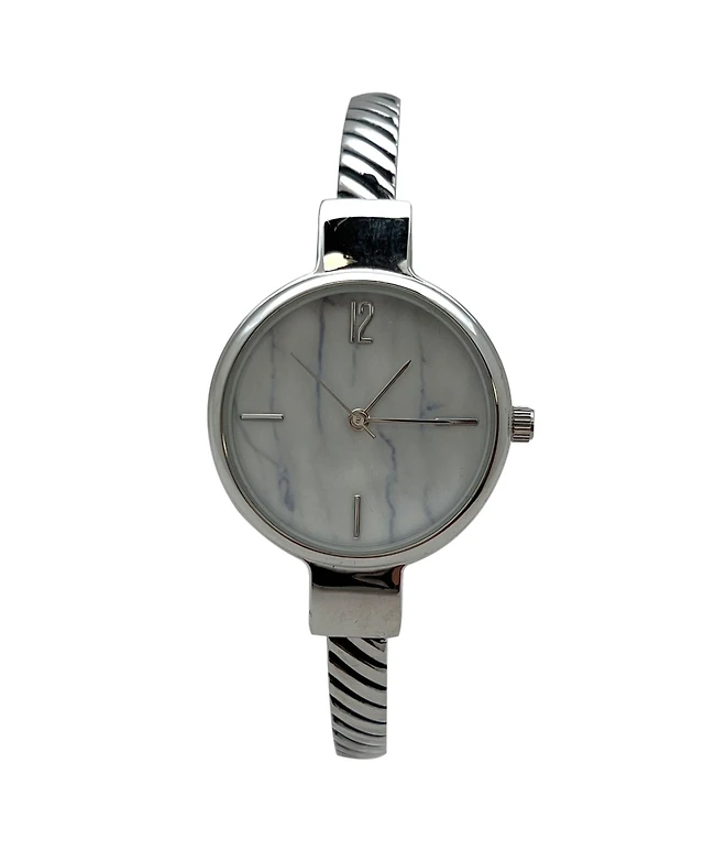 Olivia Pratt Silver Every Day Thin Marble Face Bangle Women Watch