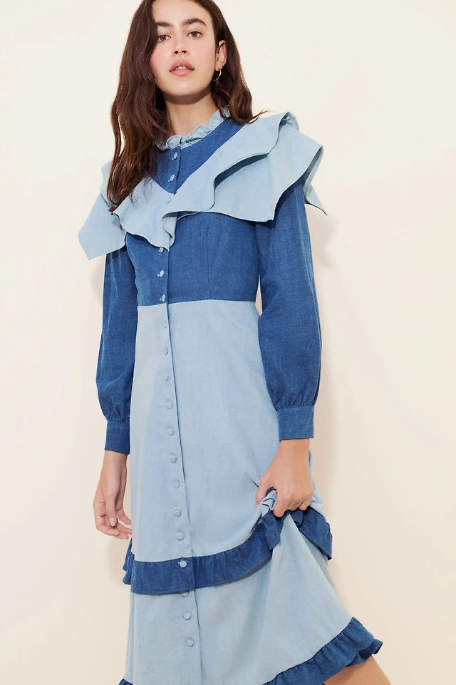 Olivia Rubin Bronte Two-Tone Denim Midi Dress