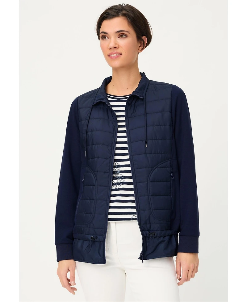A must-have jacket for the season, this trendy style blends sporty design with cozy comfort in a modern material mix.