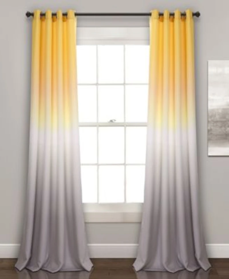 Add bold colors and modern design to your home decor with the Umbre Fiesta Room Darkening Curtains for windows. These ombre curtains for bedroom provide the perfect pop of color to your decor, designed with a gradience of one bright color fading into a light gray hue. Add these drapes to your living room, home office, primary, guest, or kids bedroom to brighten up the space. These room darkening panels provide a high level of privacy and block a significant amount of light, darkening the room. Crafted from a poly twill fabric and sold as a set, including 2 window panels. Each window curtain measures 52 inches wide. These yellow curtains offer seamless installation with metal grommets measuring 1.65" in diameter, allowing you to easily slide your curtain rod through them. Caring for these living room curtains are easy, simply machine wash cold on the gentle cycle and tumble dry low. To release wrinkles, iron on low heat.