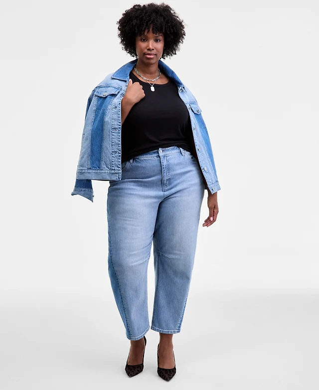 On 34th Trendy Plus Two-Tone Cropped Barrel Jeans, Macy's Exclusive