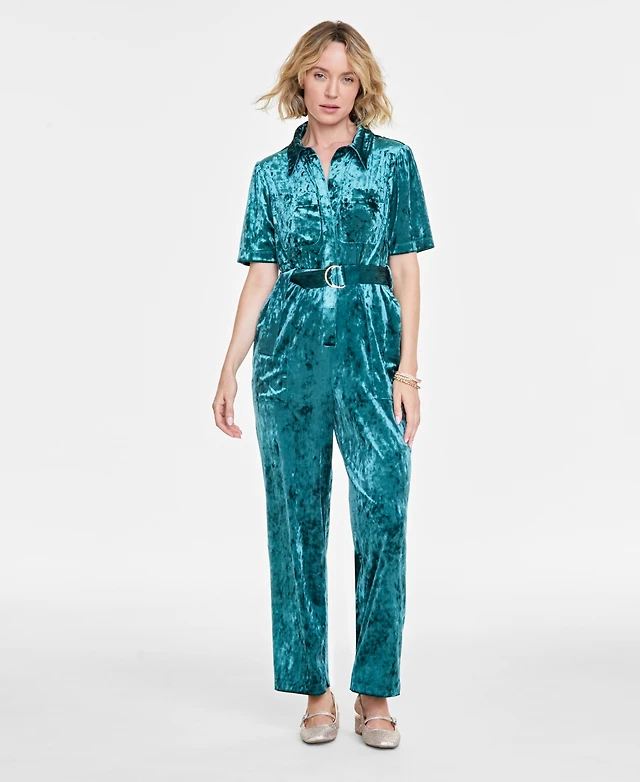 On 34th Women's Velvet Short-Sleeve Jumpsuit, Created for Macy's