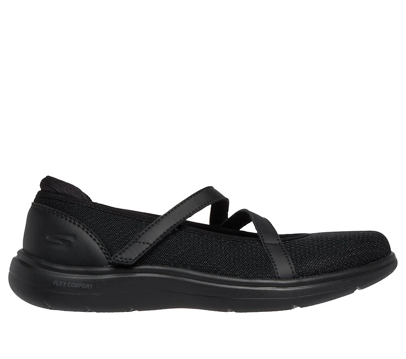 Stylish and versatile comfort combine in Skechers On-The-GO® Flex Radiant - Kimberly. This vegan Mary Jane style features a mesh upper with an adjustable instep strap, a high-rebound Skechers Air-Cooled Goga Mat™ insole, and lightweight ULTRA GO® cushioning.