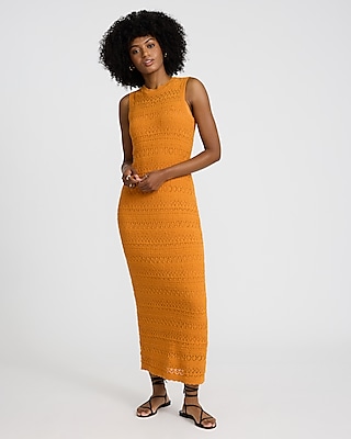 Crochet Crew Neck Sleeveless Midi Sweater Dress