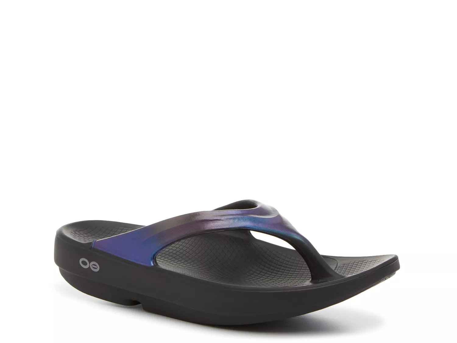 Pamper your feet on your casual days by slipping into the Oolala Luxe flip flops from OOFOS. Crafted with revolutionary OOfoam™ technology, this pair is designed to absorb 37% more impact than tradition foam. These sandals reduce stress on feet, knees, and joints and are designed with strategic arch support for extra comfort.